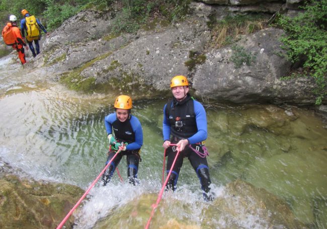 Cette descente de canyon (ou de clue) s’effectue avec des petits groupes de 8 personnes maximum par guide. Pour les groupes constitués de plus de 8 personnes, il suffit juste de rajouter les guides de canyoning nécessaires pour l’encadrement, la pédagogie, la sécurité et le respect de la réglementation du canyoning dans les Alpes-Maritimes. Les guides de Canyoning 06 by Destination Nature sont tous diplômés d’Etat en Canyonisme, possèdent une parfaite connaissance des canyons des Alpes d’Azur, une grande expérience en la matière. Ils font tous preuve de pédagogie, sécurité, approche respectueuse de l’environnement et bonne humeur !