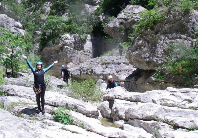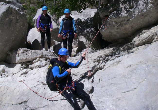 Cette descente de canyon (ou de clue) s’effectue avec des petits groupes de 8 personnes maximum par guide. Pour les groupes constitués de plus de 8 personnes, il suffit juste de rajouter les guides de canyoning nécessaires pour l’encadrement, la pédagogie, la sécurité et le respect de la réglementation du canyoning dans les Alpes-Maritimes. Les guides de Canyoning 06 by Destination Nature sont tous diplômés d’Etat en Canyonisme, possèdent une parfaite connaissance des canyons des Alpes d’Azur, une grande expérience en la matière. Ils font tous preuve de pédagogie, sécurité, approche respectueuse de l’environnement et bonne humeur !