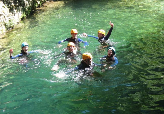Cette descente de canyon dans les Gorges du Loup s’effectue avec des petits groupes de 8 personnes maximum par guide. Pour les groupes constitués de plus de 8 personnes, il suffit juste de rajouter les guides de canyoning nécessaires pour l’encadrement, la pédagogie, la sécurité et le respect de la réglementation du canyoning dans les Alpes-Maritimes.