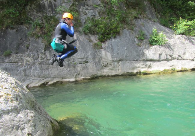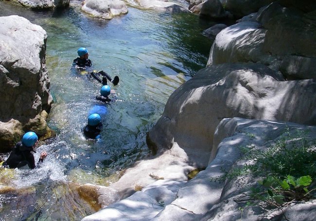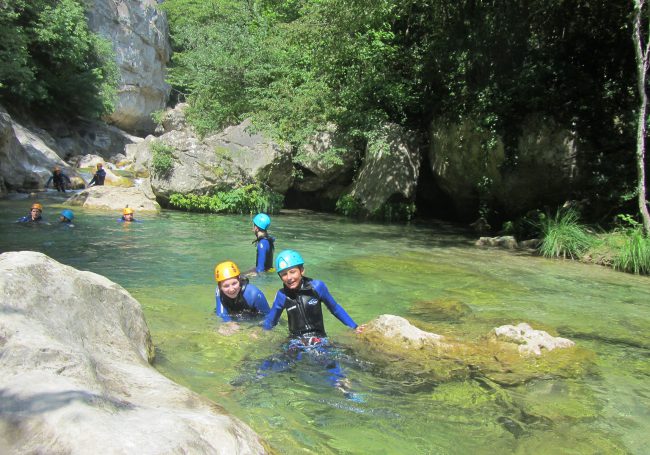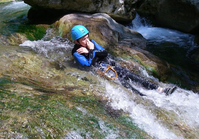 Cette Aquarando qui est en fait un parcours facile et raccourci du canyoning découverte des Gorges du Loup ne présente aucune descente en rappel et s’adresse à des groupes débutants de tous âges avec un minimum de 8 ans.