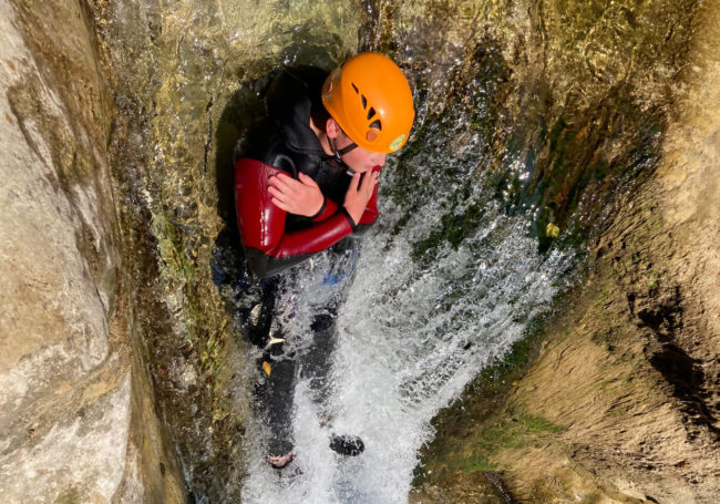 Votre guide sera toujours à vos côtés pour vous conseiller, en fonction de votre technique, pour le choix de la hauteur des sauts que vous pouvez effectuer en toute sécurité. Ce parcours de Canyoning niveau Découverte du Canyon du Loup s’adresse ainsi à un large public, dès l’âge de 11 ans.